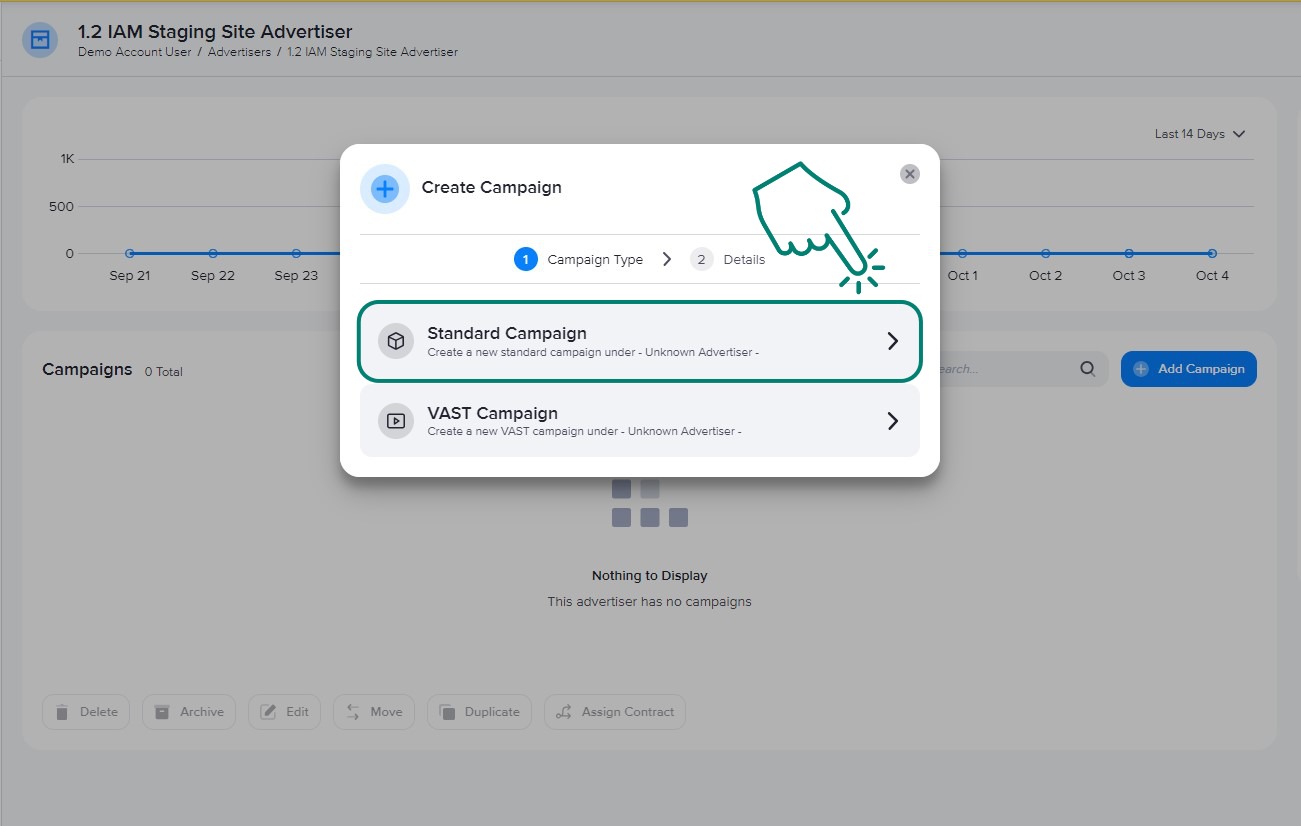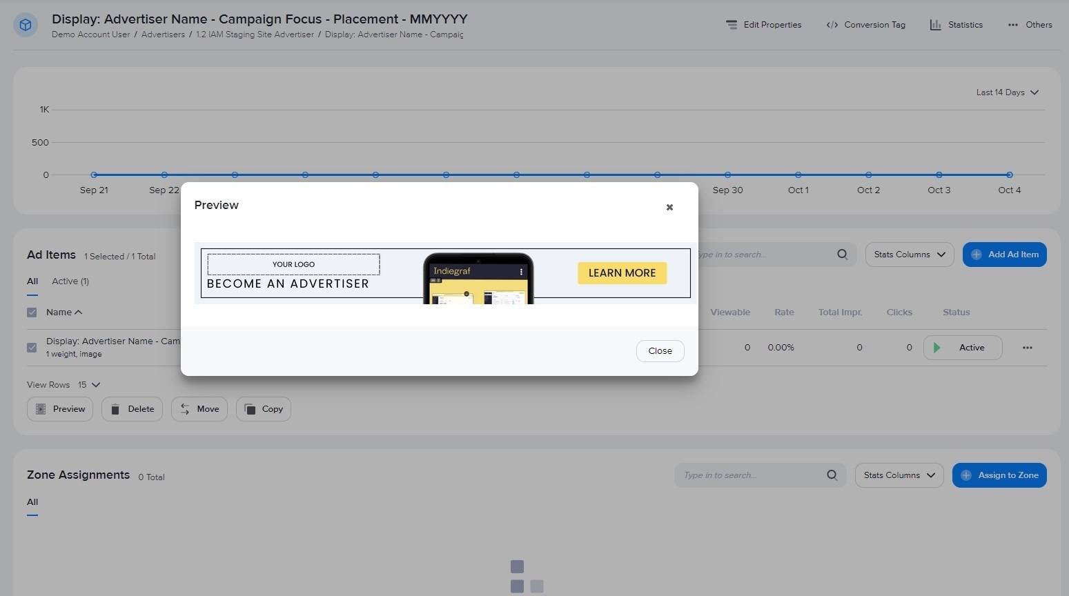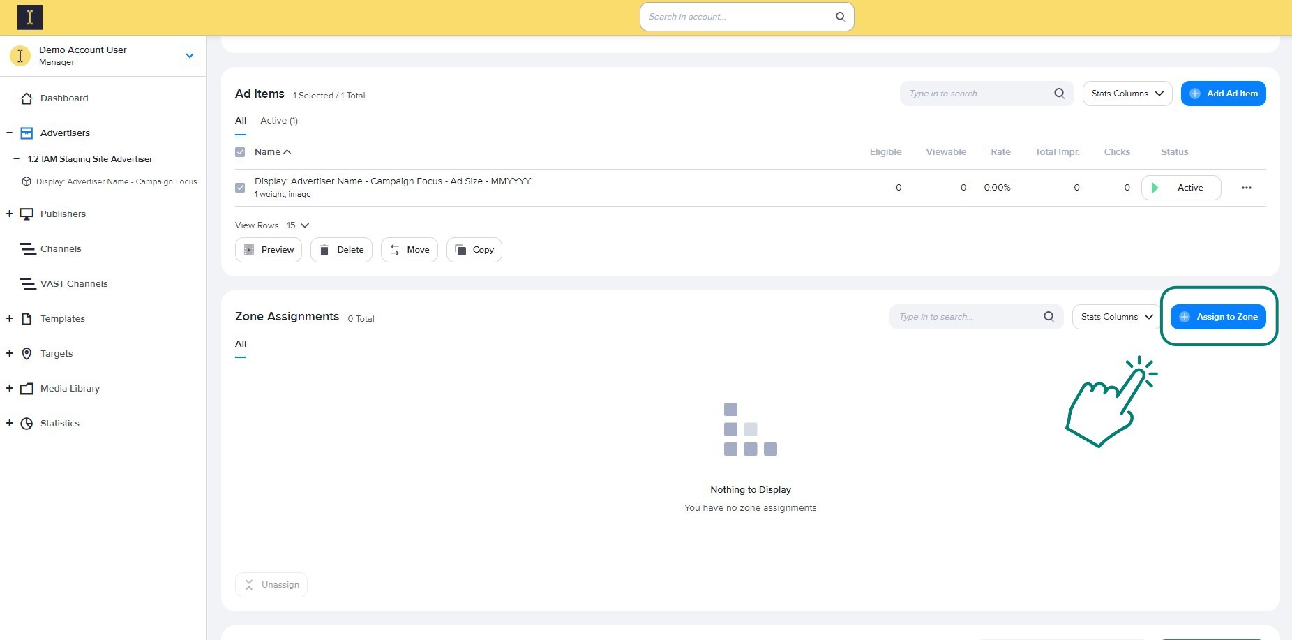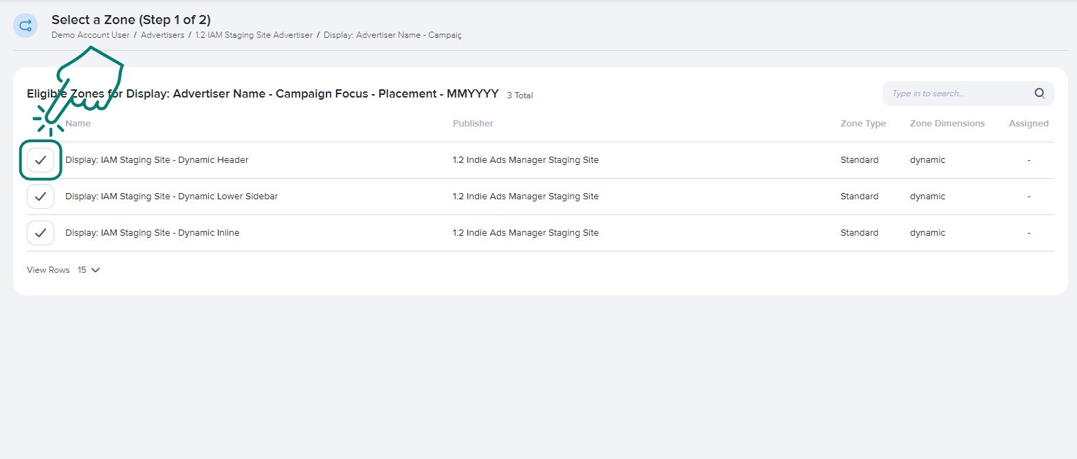 1. Any eligible campaigns for the zone will show up, select the campaign you set up in the previous step.