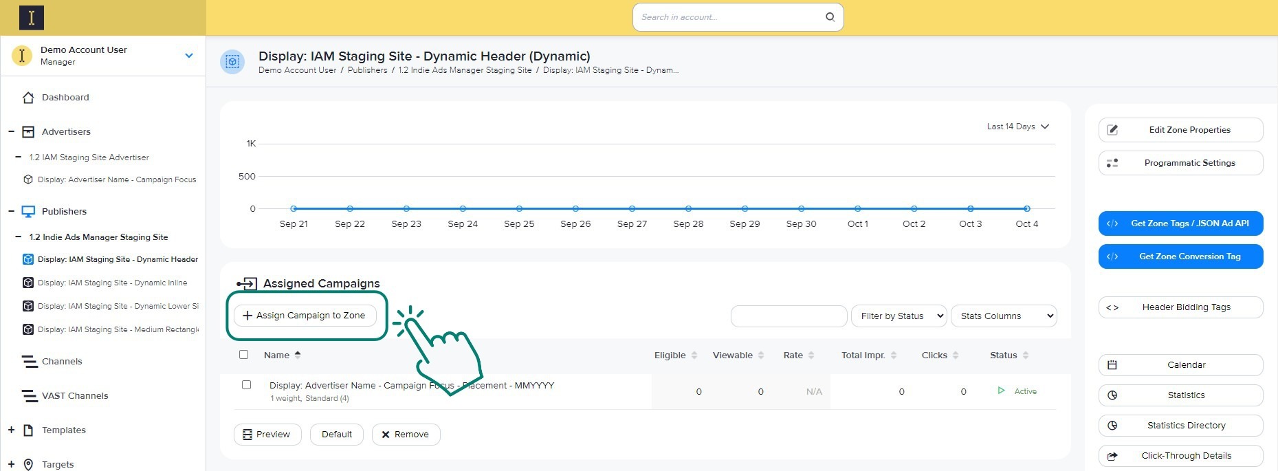 3. Under Assigned Campaigns click Assign Campaign to Zone