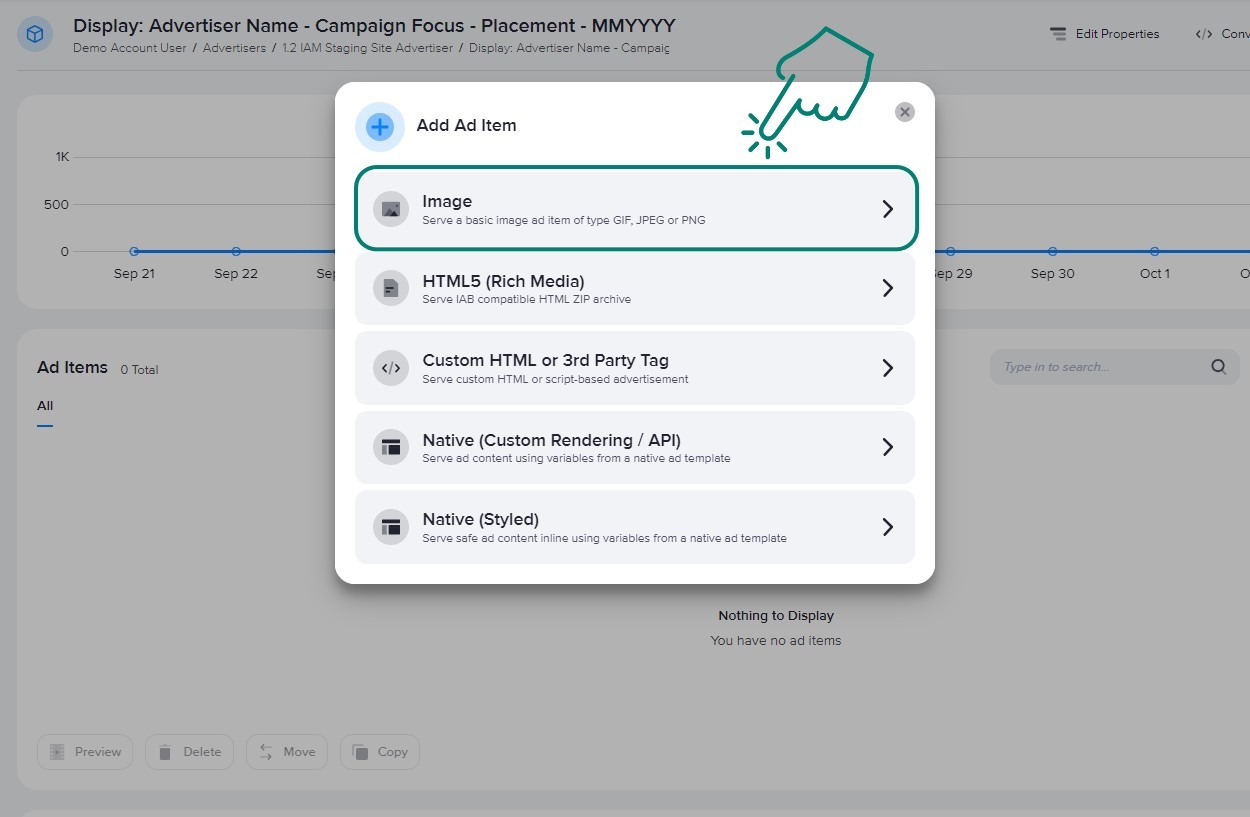 2. The add ad item window will appear. From the list of ad types, select Image.